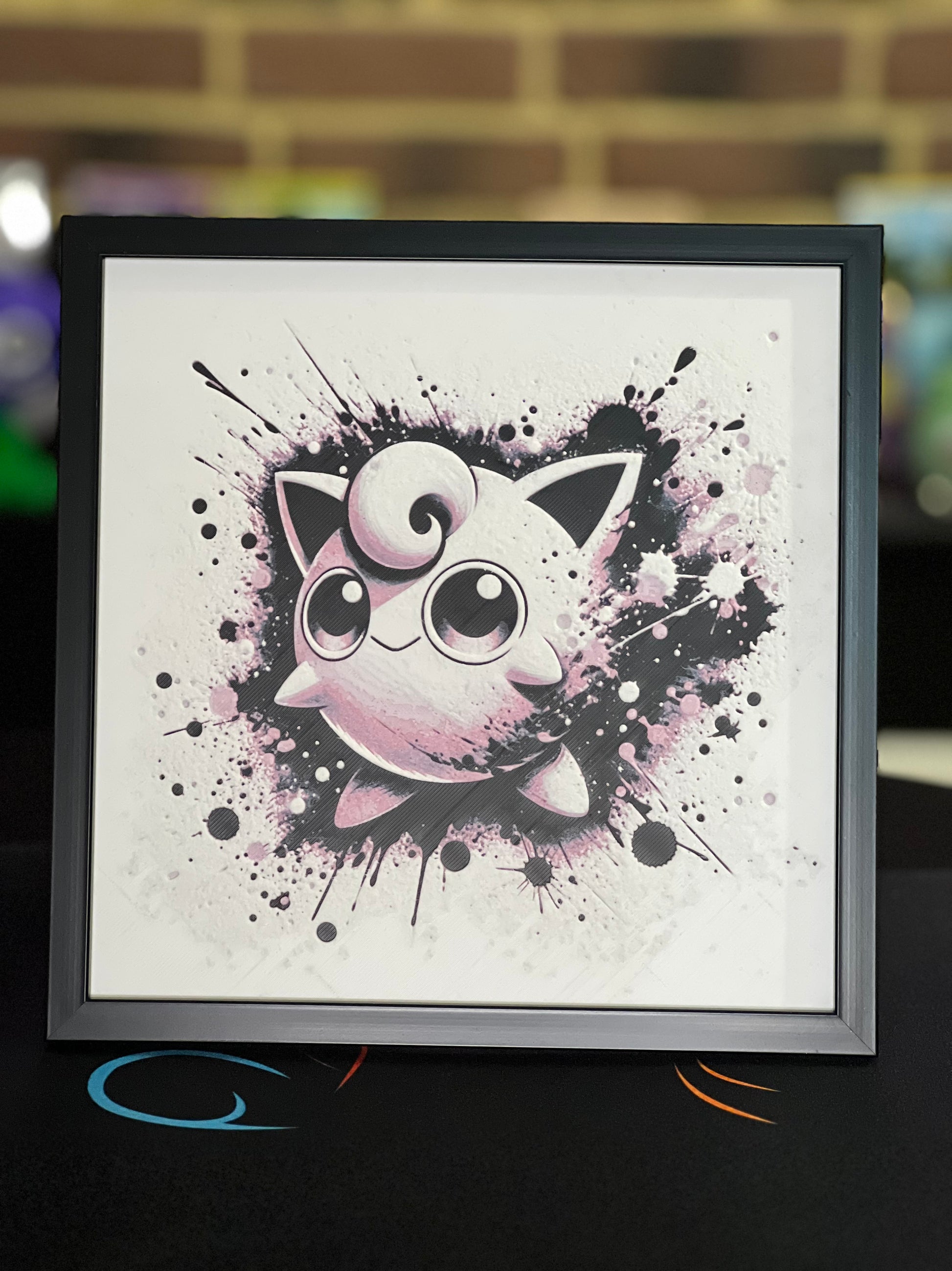 Ce modèle met à l’honneur Rondoudou, le Pokémon doux et chantant, capable d’endormir ses adversaires d’un simple air mélodieux. Son design épuré et son relief subtil font de ce cadre une pièce originale, parfaite pour les fans de Pokémon ou les amateurs de créations artisanales.