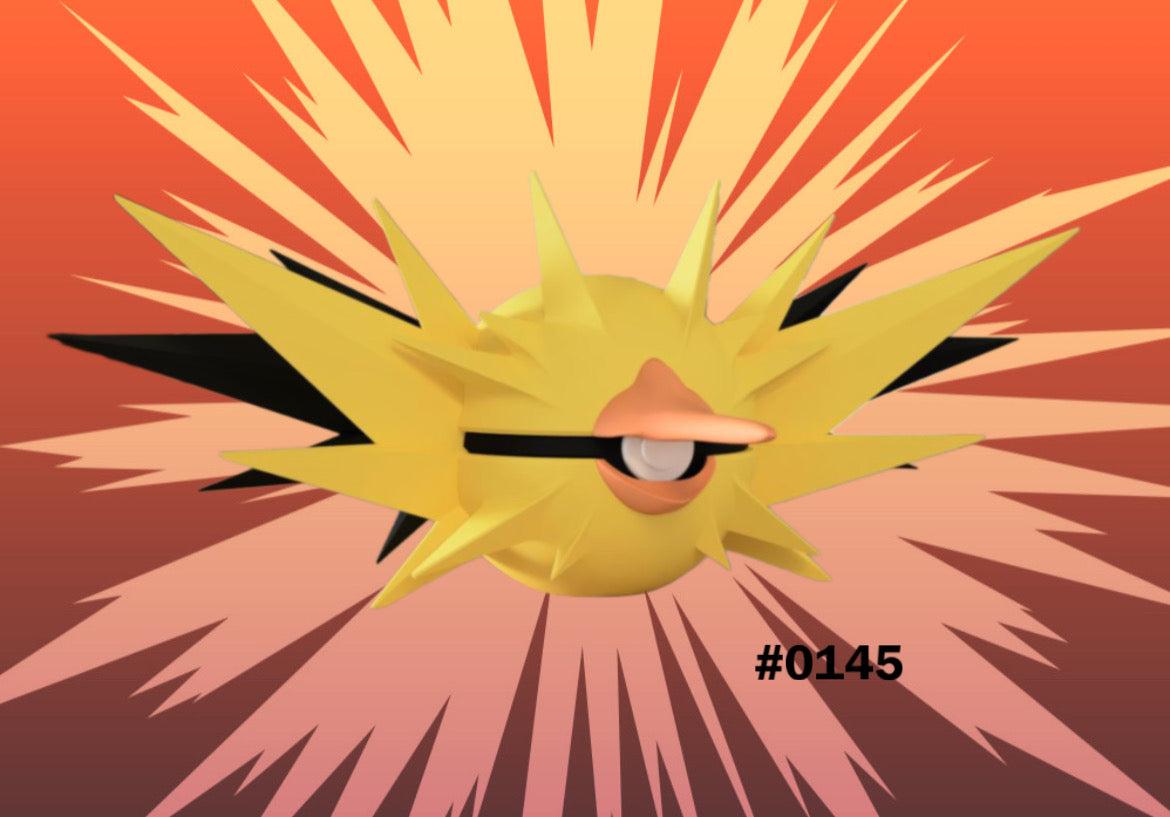 Electhor est un Pokémon légendaire de type Électrik et Vol, connu pour ses pouvoirs de foudre. Il est capable de déclencher des orages et de provoquer des éclairs dévastateurs. Son apparence majestueuse, avec des éclairs qui crépitent autour de lui, en fait un symbole de puissance céleste.