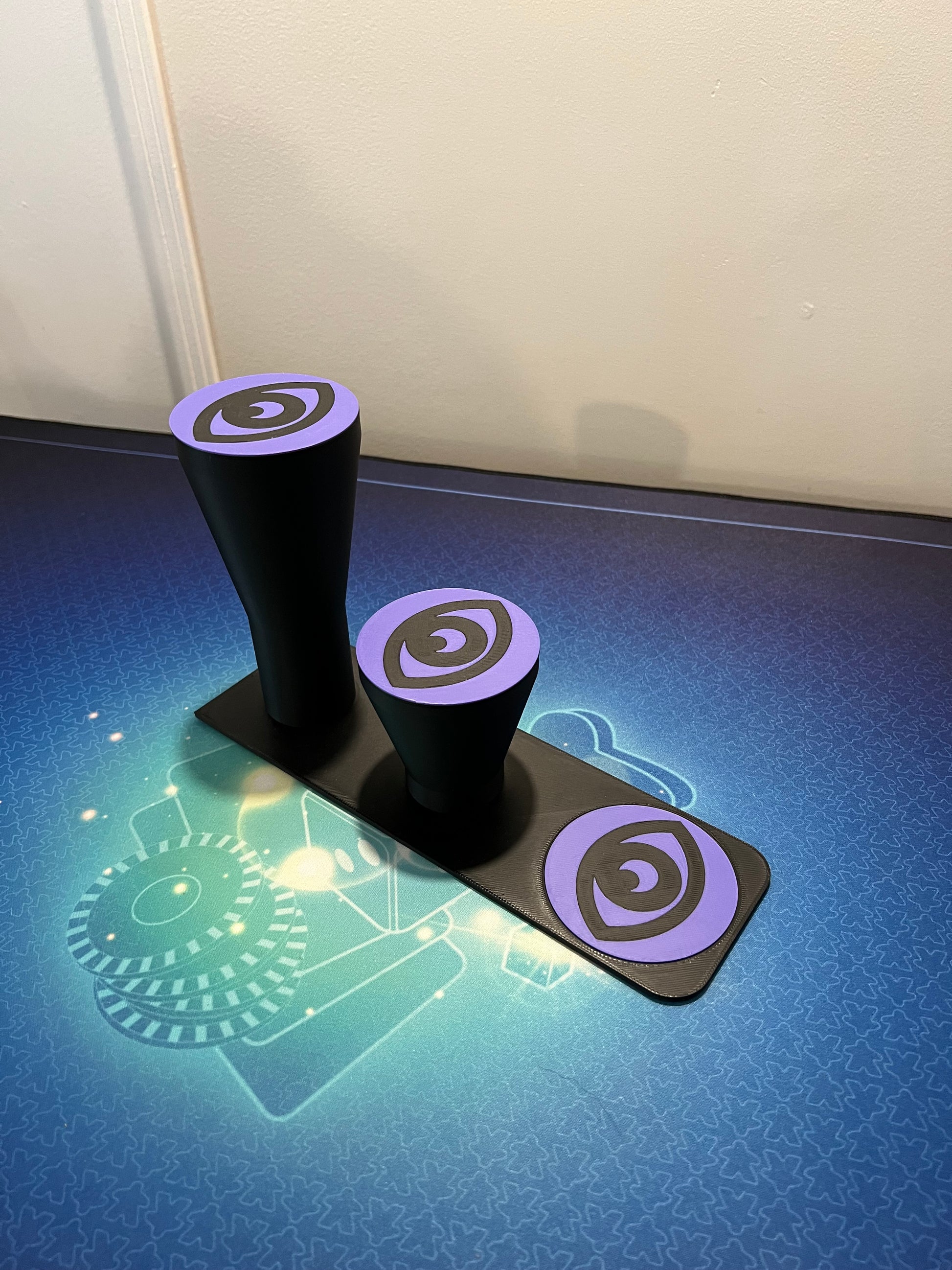 Présentoir stable et élégant, imprimé dans notre atelier. Il peut accueillir 3 Pokéballs et il est livré avec les énergies correspondant au type du Pokémon présent dans votre commande ou avec le design des pokeball standard. Les énergies sont automatiquement offertes avec le support!